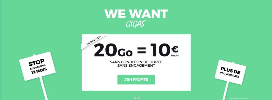 RED by SFR propose à nouveau sa série limitée 20 Go à 10 euros / mois. Elle est cette fois-ci disponible jusqu’au lundi 21 novembre… sauf éventuelle prolongation. L’offre est la même que celle proposée en septembre, et si le prix est intéressant, il faut noter qu’aucun usage depuis l’étranger n’est inclus.